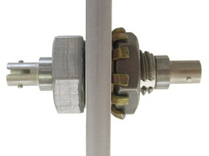 The M14 optical feedthrough has a key-way slot that allows the use of a tab-lock washer: a perfect combination for using the feedthrough in challenging environments. It uses a standard aeropsace AS568A O'ring. While it comes with a Viton® O'ring, it is possible to get the feedthrough with different O'ring materials, such as Buna-N (Nitrile), perfluoro-elastomer, Teflon® (PTFE), fluoro-silicone, polyurethane or Neoprene.