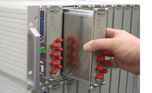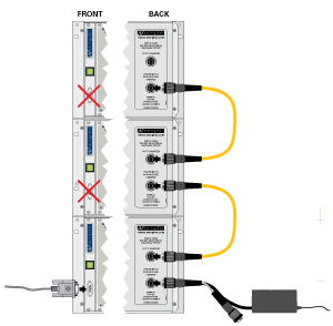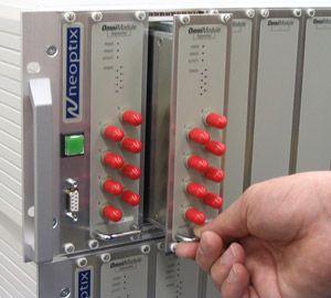 The OmniFlex starts with a standard 4U / 19-inch rackmount chassis that can accommodate up to eight single- or multi-channel fiber optic modules, providing up to 64 optical channels per chassis. You can easily add modules yourself – just remove the blank panel at the location where you want to add the new module and slide it into the chassis. Fasten the module in place and the back panel connector will do the rest. The new module will automatically be recognized by the OmniLink™ software.